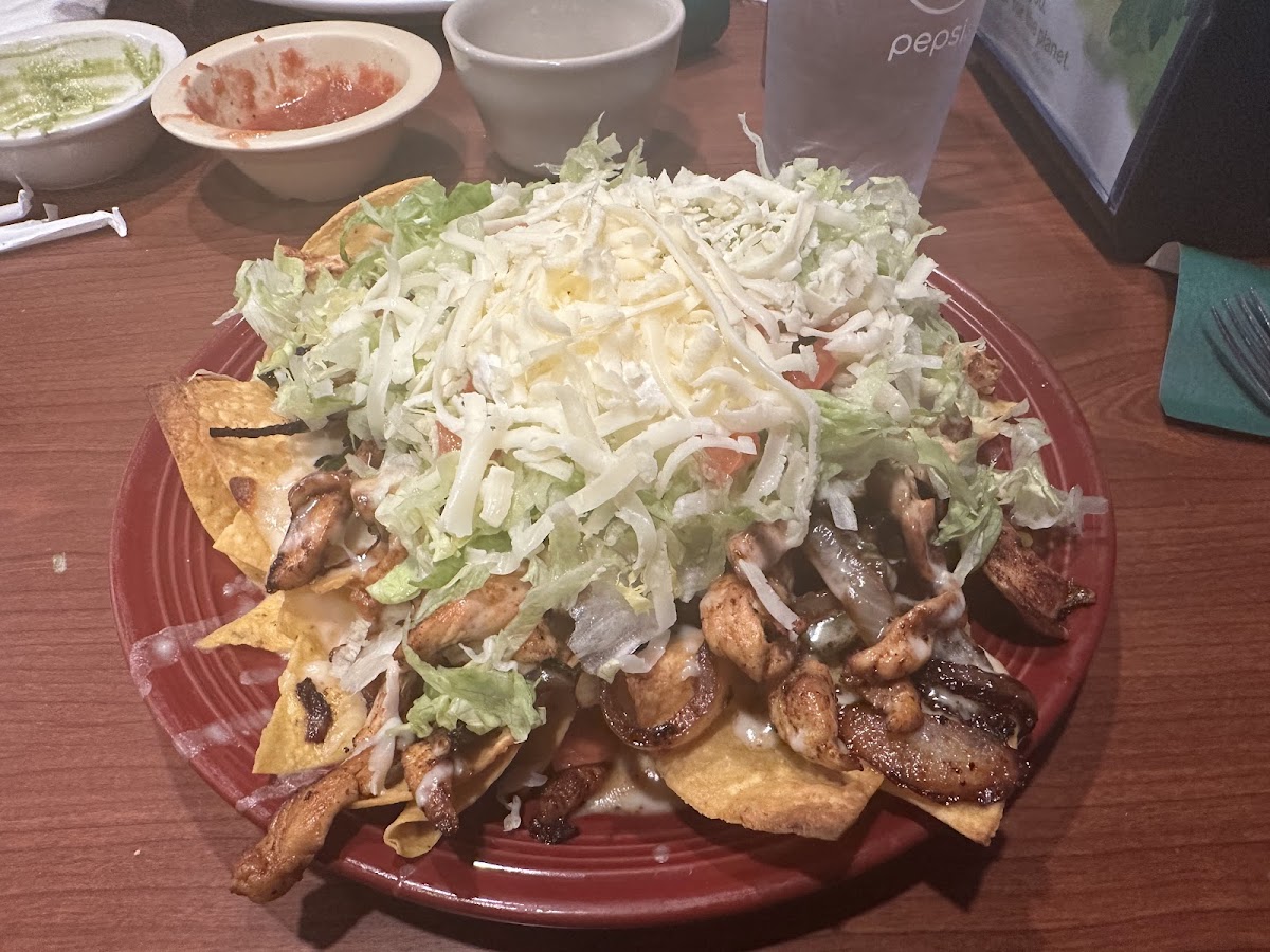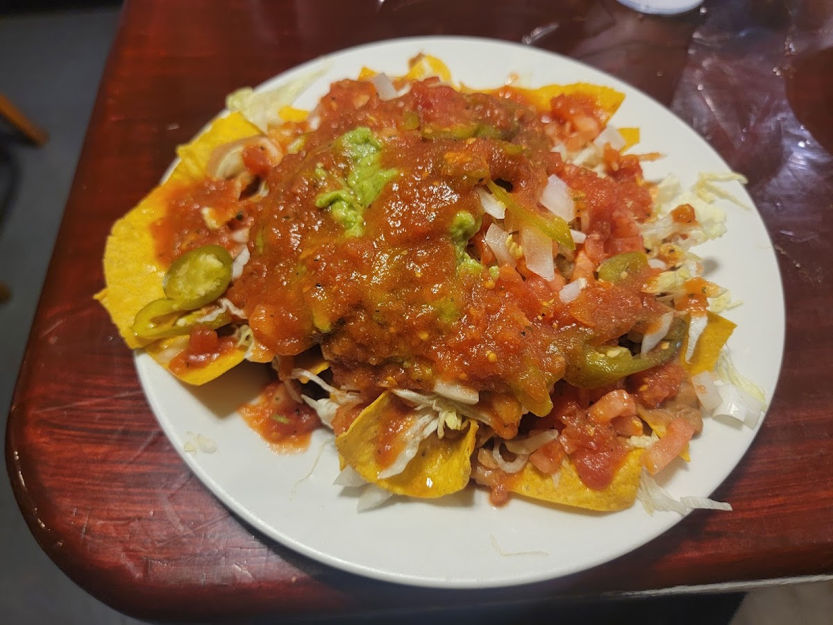 We're on a vegan diet right now and these good folks were happy to accommodate us by making some Special Nachos. They had chips, lettuce, onions, refried beans, pickled jalapeños, guacamole and salsa. They were delicious!